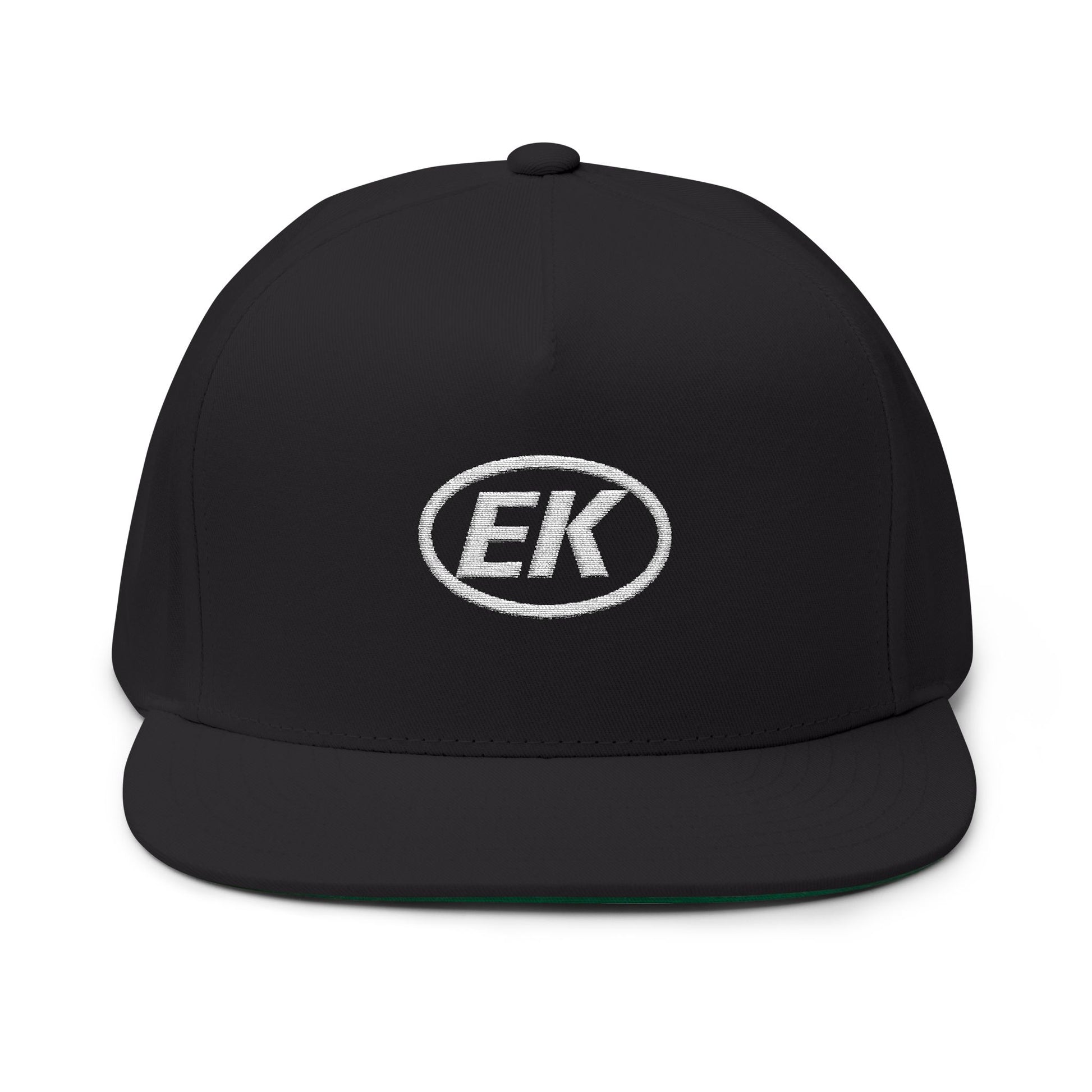 Embroidered EK Logo Flat Bill Cap — Classic Snapback Hat